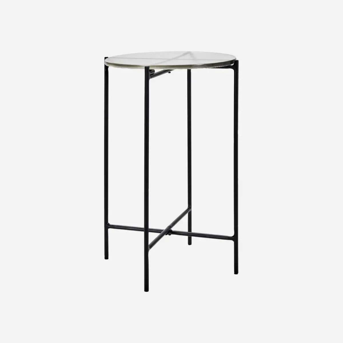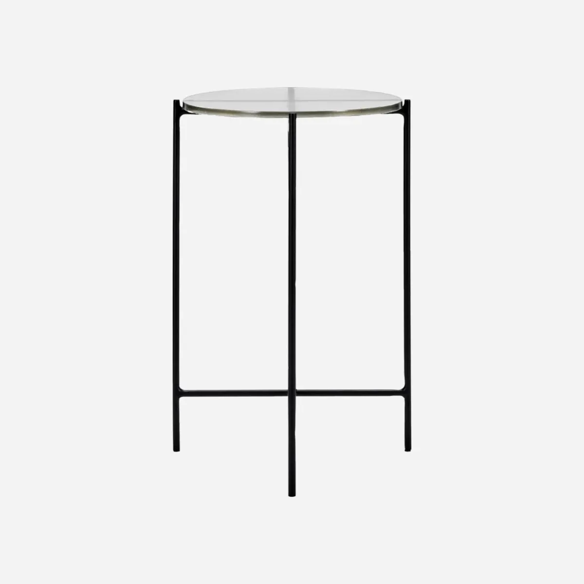 Material: Gestell: Eisen, Tischplatte: Glas