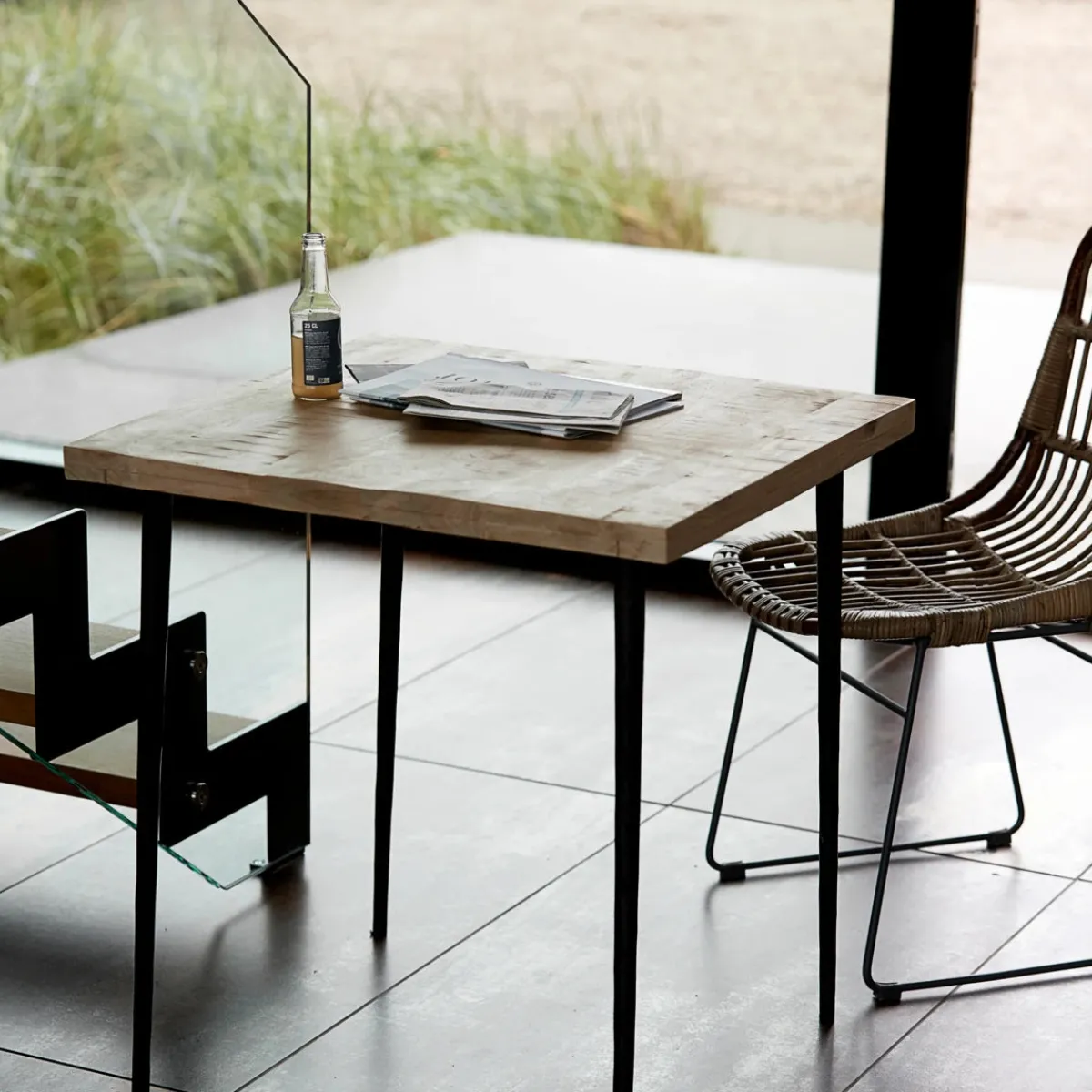 Material: Tischplatte: Mangoholz, Gestell: Eisen