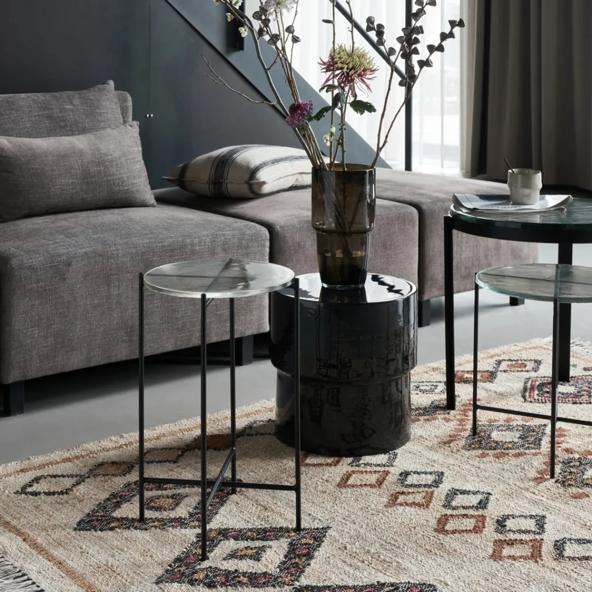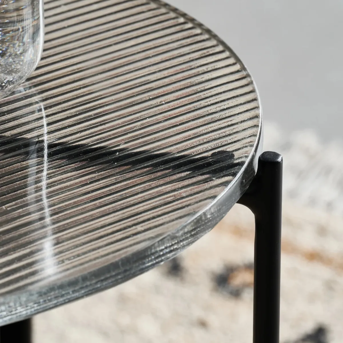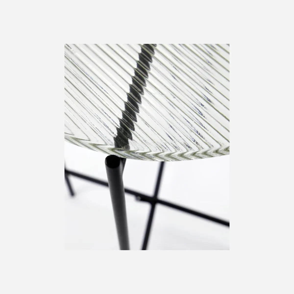 Material: Gestell: Eisen, Tischplatte: Glas