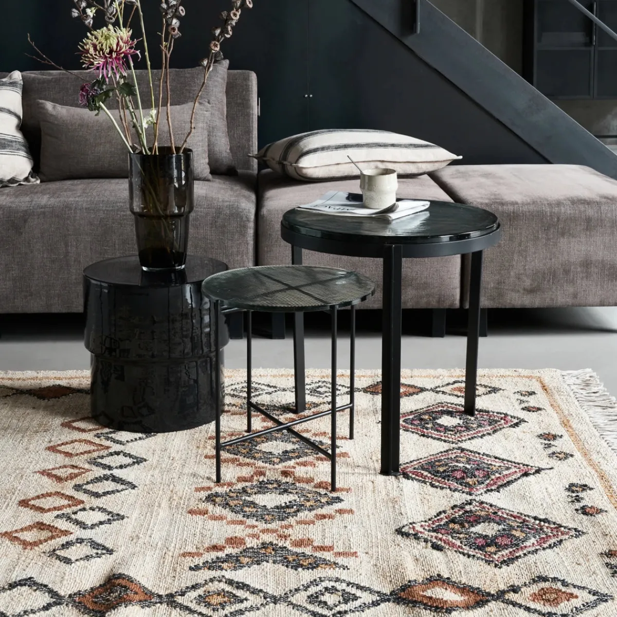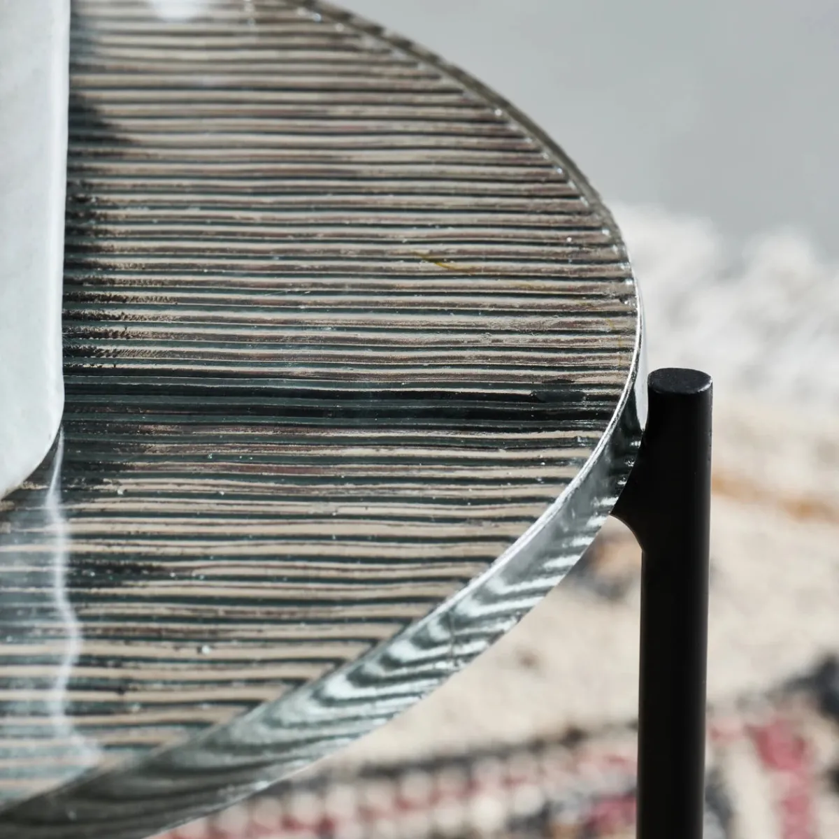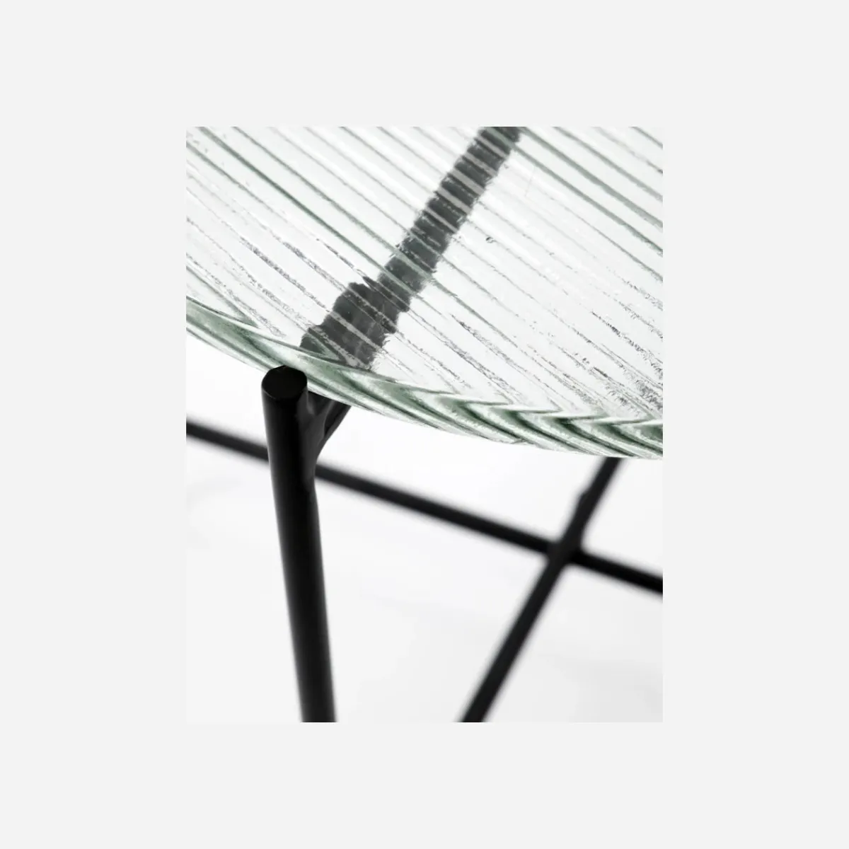 Material: Tischplatte: Eisen, Gestell: Glas
