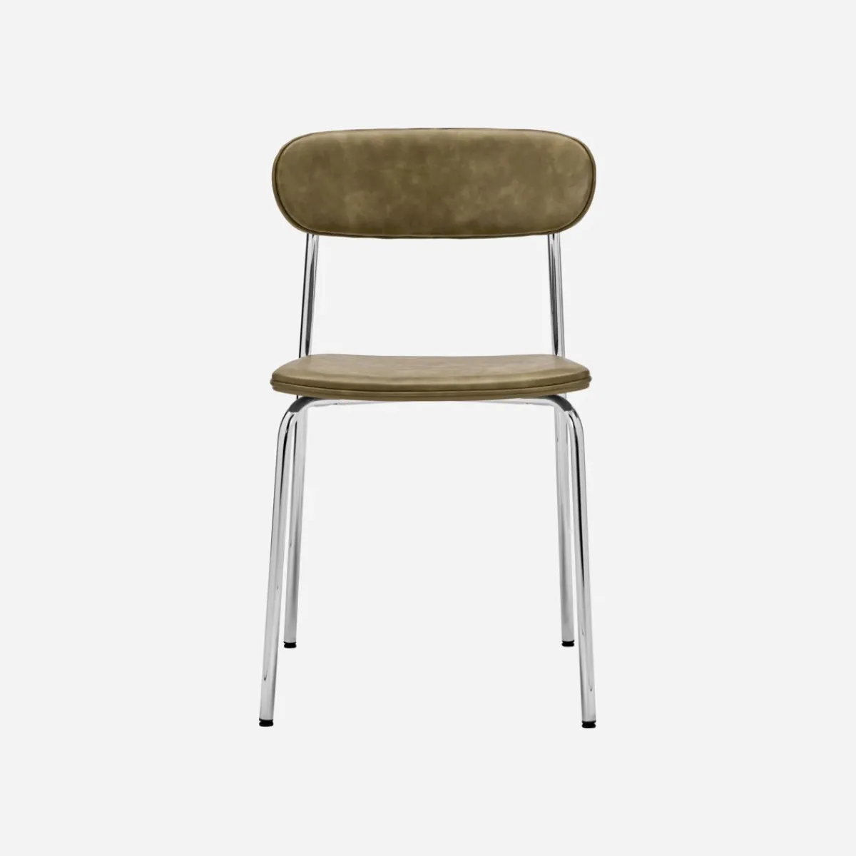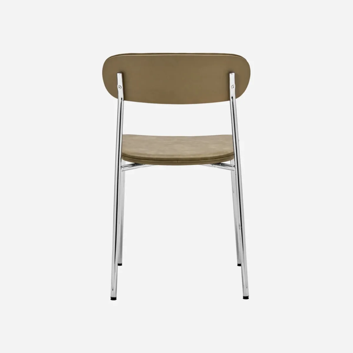 Das verchromte Gestell sorgt für einen eleganten Look und die Sitzfläche und die Rückenlehne in khakifarbener Lederoptik strahlen Wärme und Stil aus. Die Paspelierung entlang der Kanten ist ein raffiniertes Detail. Praktisch: Er ist stapelbar und so flexibel zu nutzen – als Sitzgelegenheit am Esstisch, am Schreibtisch oder sogar im Besprechungsraum. Der Stuhl lädt zum Verweilen ein und rundet diverse Einrichtungsstile ab.